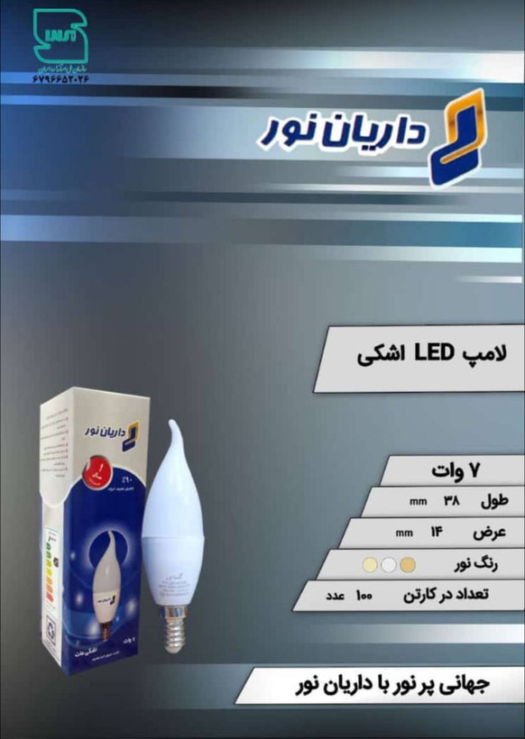 لامپ ال ای دی اشکی ۷ وات پایه E14 داریان نور